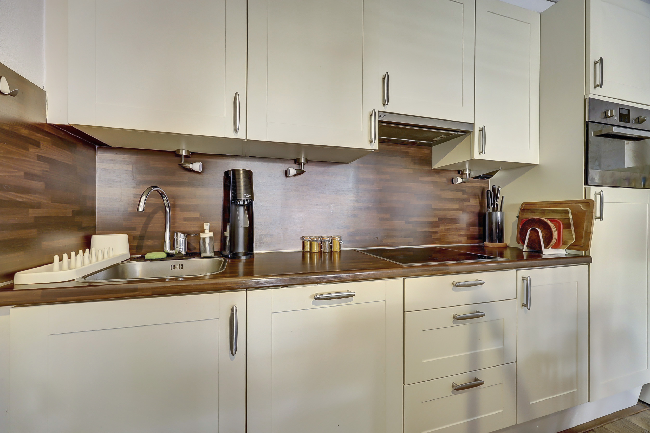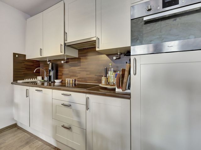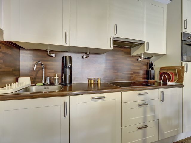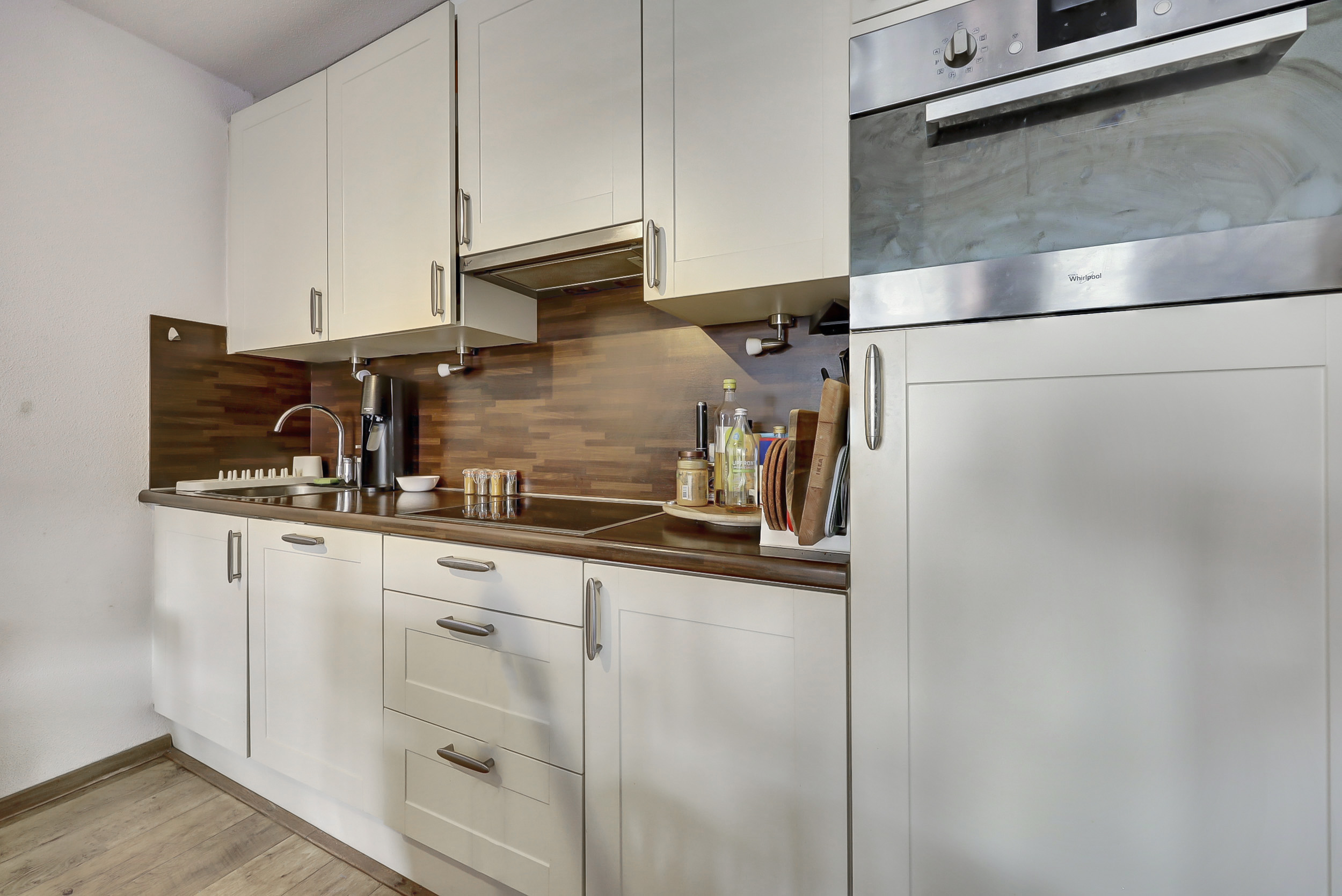 De fijne woonkamer heeft een open keuken en geeft toegang tot de tuin (gelegen op het noorden). De open keuken is van alle gemakken voorzien en beschikt over een los keukenblok en heeft de navolgende inbouwapparatuur: inductiekookplaat met afzuigkap, vaatwasser, combi-oven, koelkast en voldoende kastruimte.