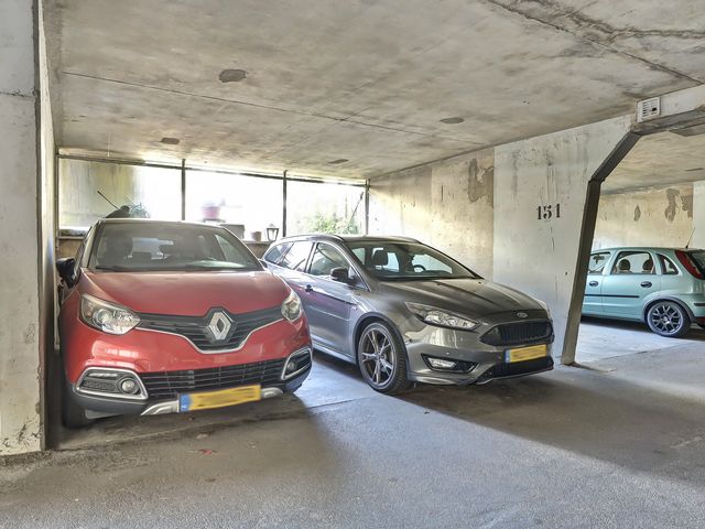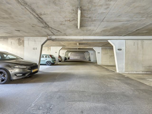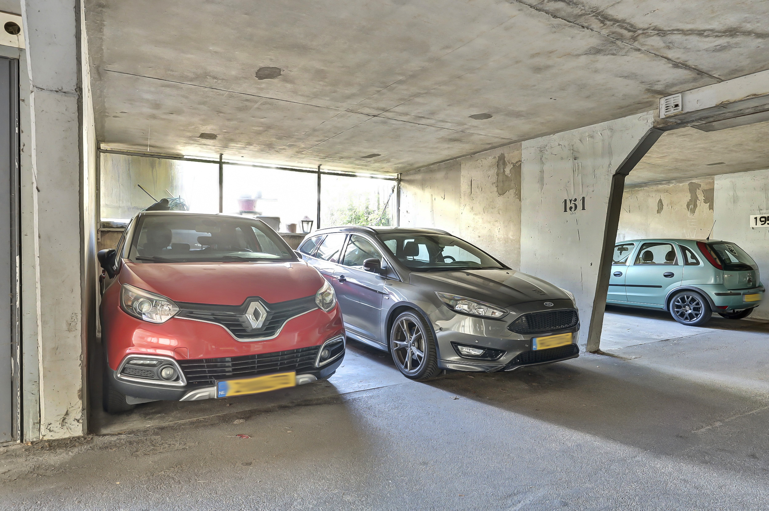 In de straat zelf kan je niet met de auto komen, maar deze kan je wel in de omliggende straten parkeren. Bij de woning zelf behoort ook een vaste parkeerplek in de garage.