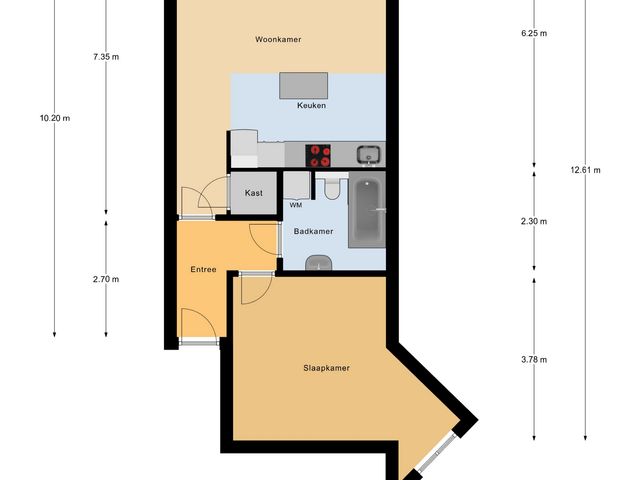 De slaapkamer is aan de voorzijde van het appartement gelegen is kan speels ingedeeld worden. De kamer is circa 14 m2 groot.