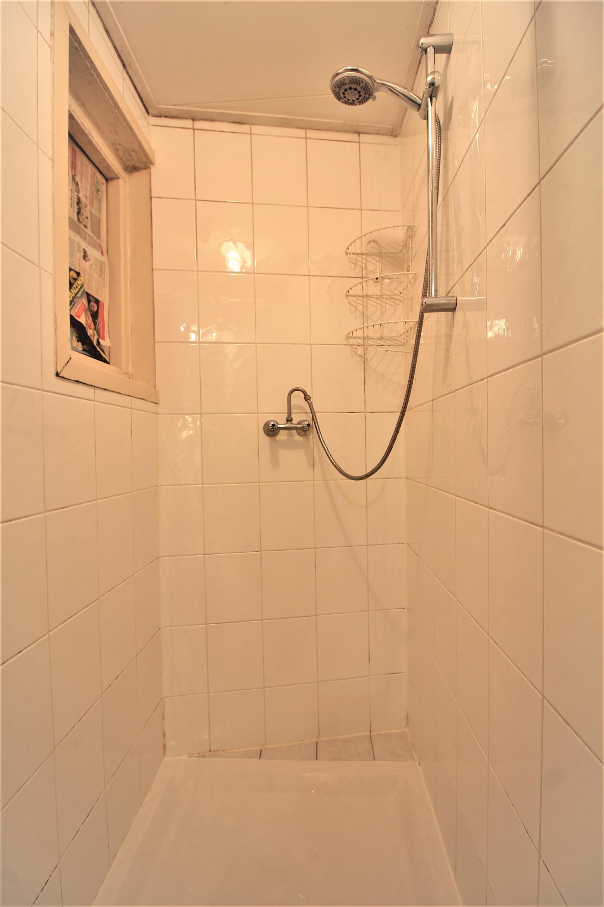 De badkamer is voorzien van inloopdouche, toilet en handdoekradiator.