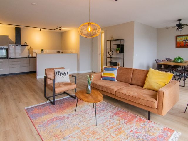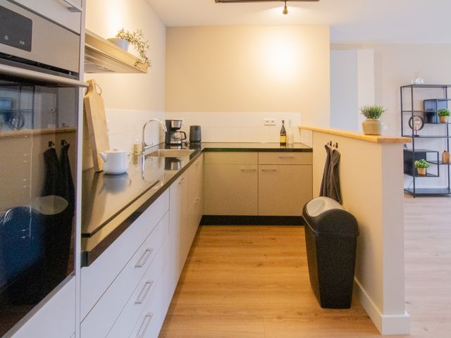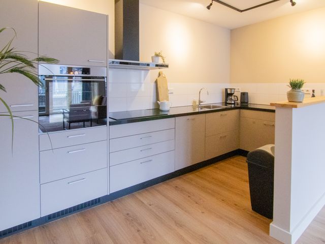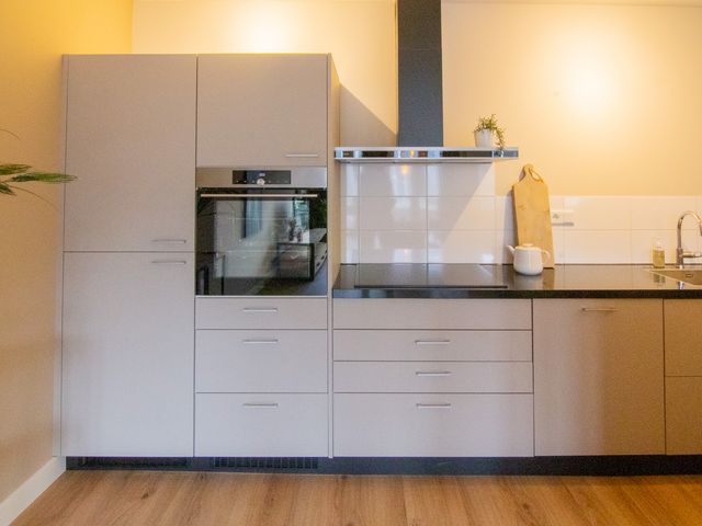 De woonkamer is zeer ruim te noemen en van alle gemakken voorzien. De open keuken heeft verschillende inbouwapparatuur waaronder een inductiekookplaat met afzuigkap, koel-vries combinatie, combi-oven en vaatwasser.