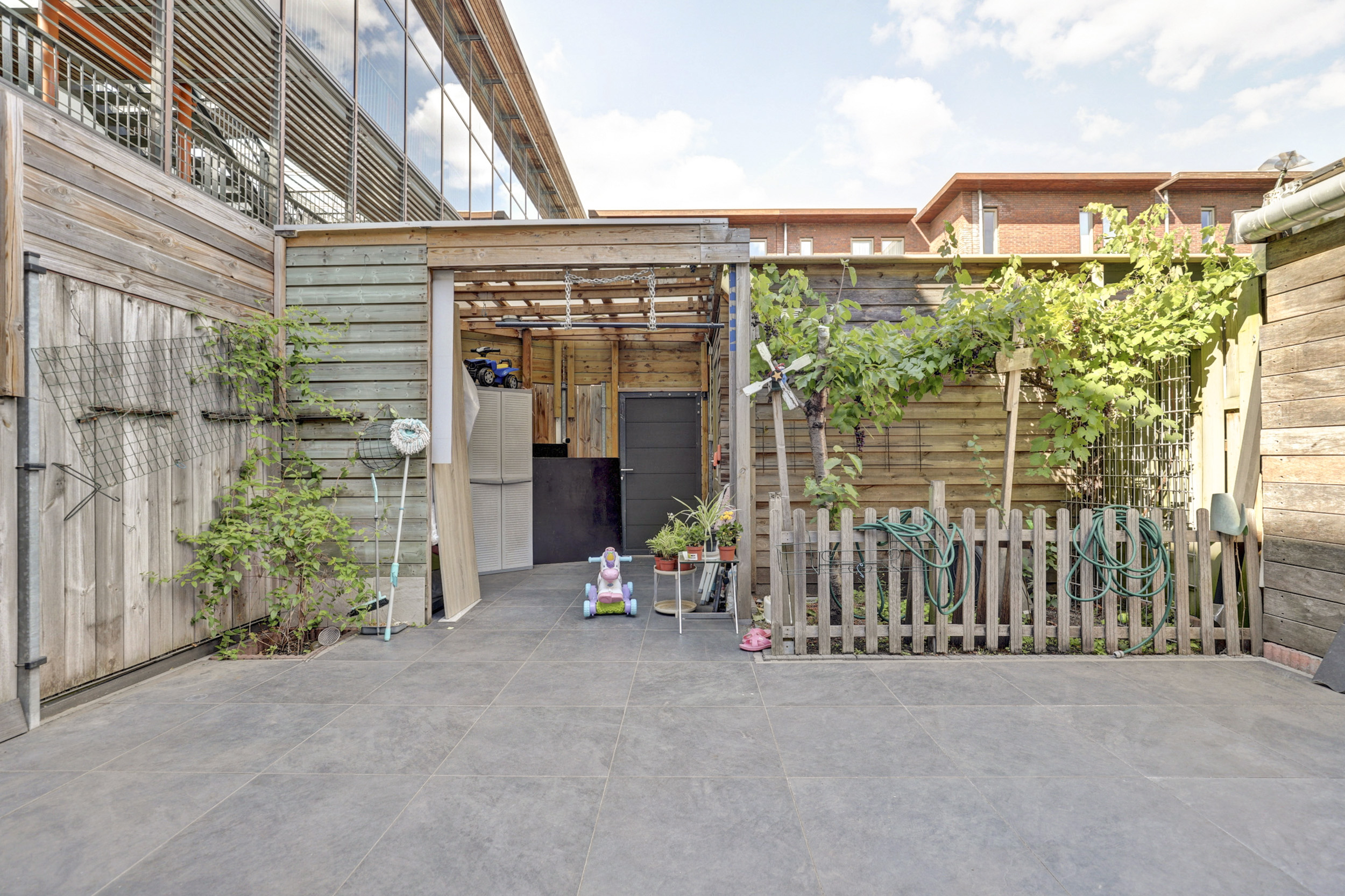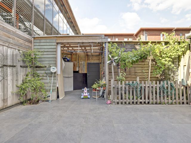 De tuin ligt op het noorden en heeft nog een overkapping met schuur. Tevens is er een achterom aanwezig.