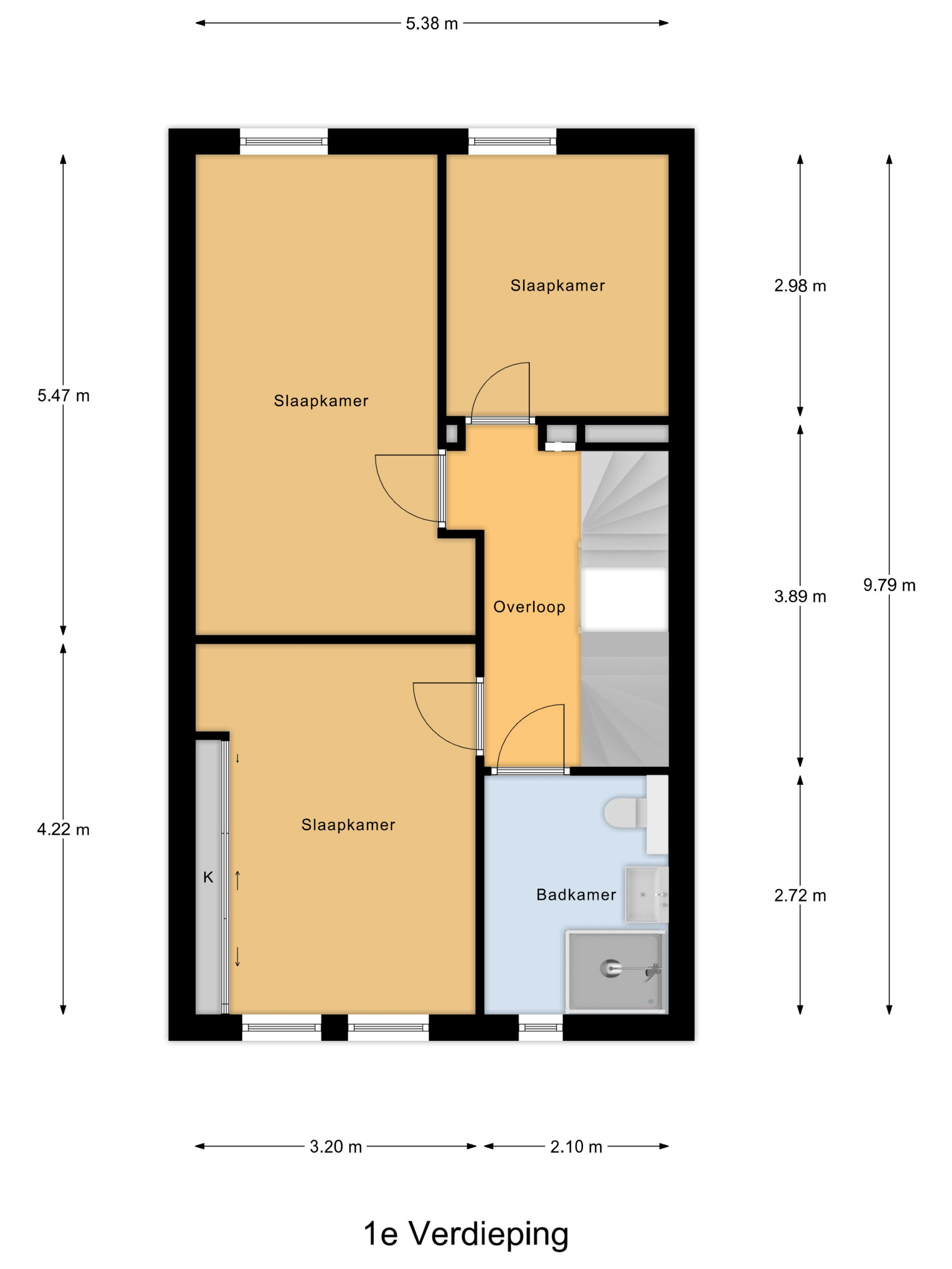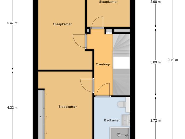 Via de overloop heb je toegang tot alle 3 de slaapkamers en de badkamer.