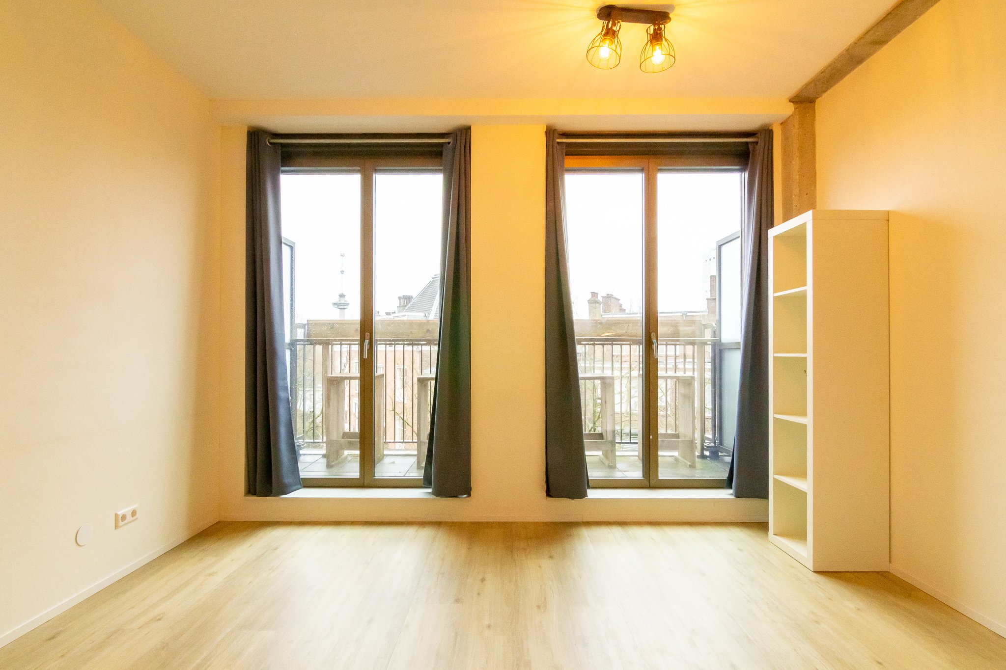 Een parkeerplaats kan je huren onder het gebouw.