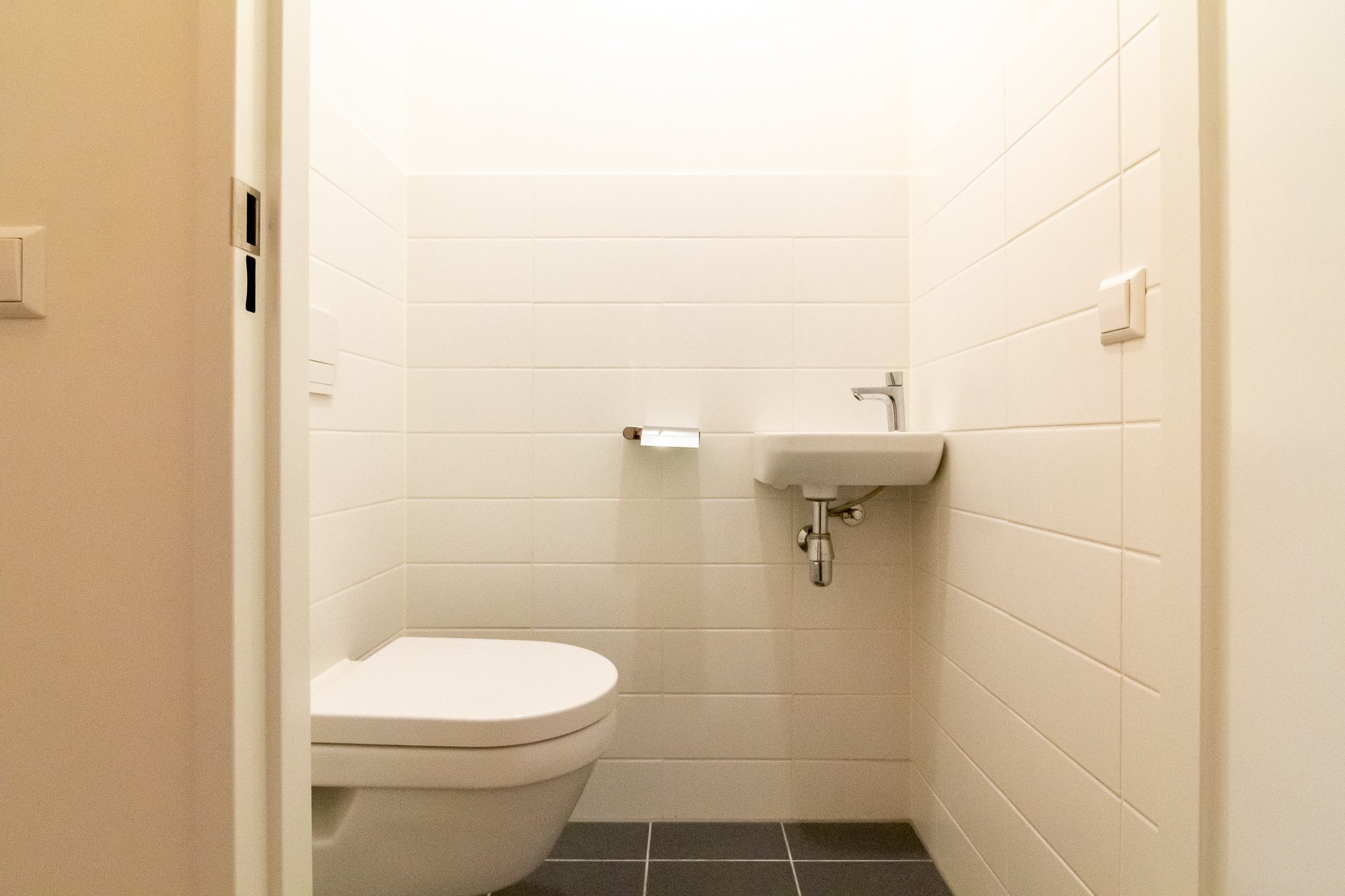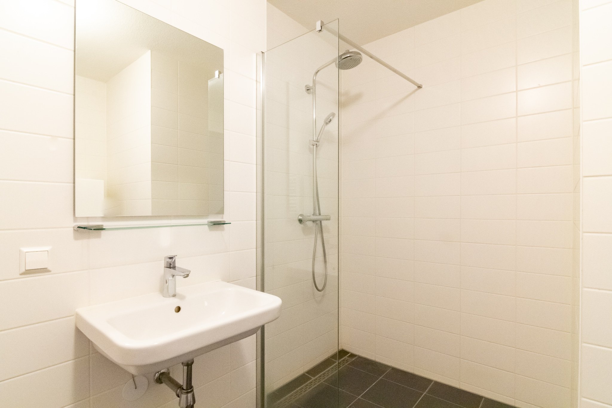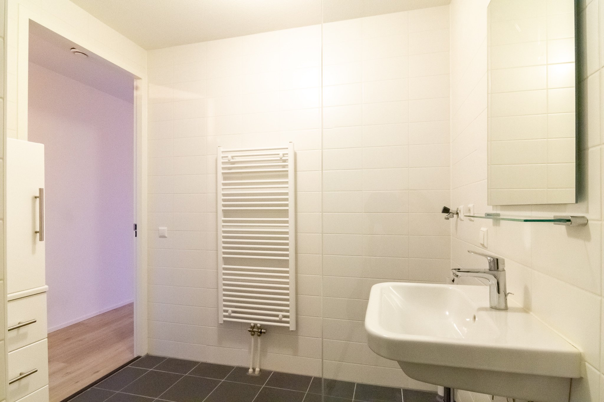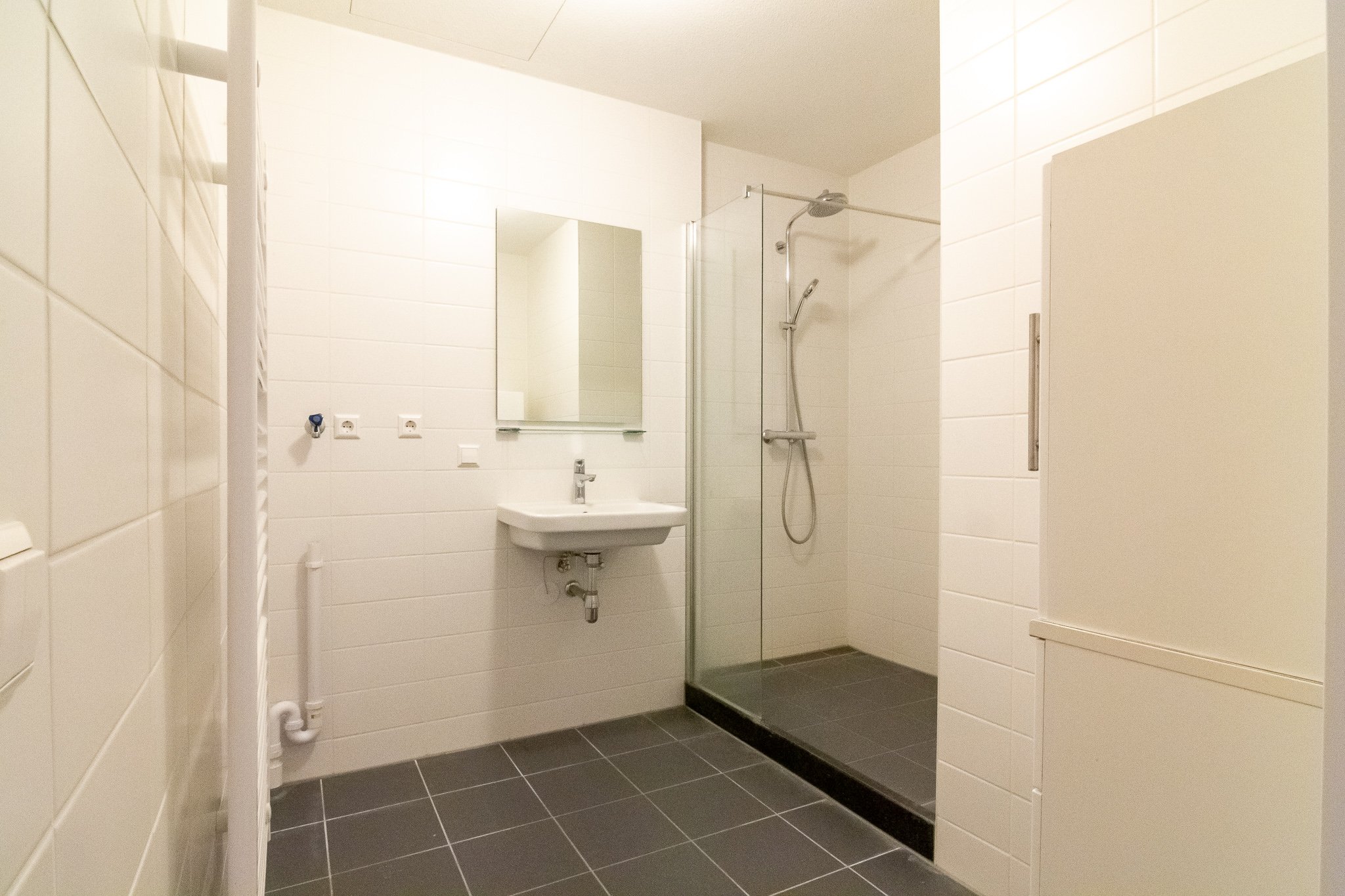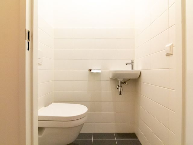 De luxe badkamer is voorzien van een wastafel, een inloop (regen)douche en de wasmachine-aansluiting. Het luxe separate toilet is voorzien van een fonteintje.