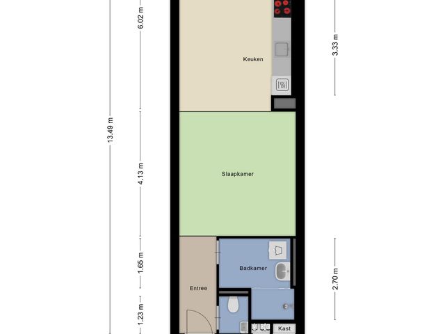 Het slaapgedeelte biedt ruim voldoende plaats voor een tweepersoonsbed en kastruimte.